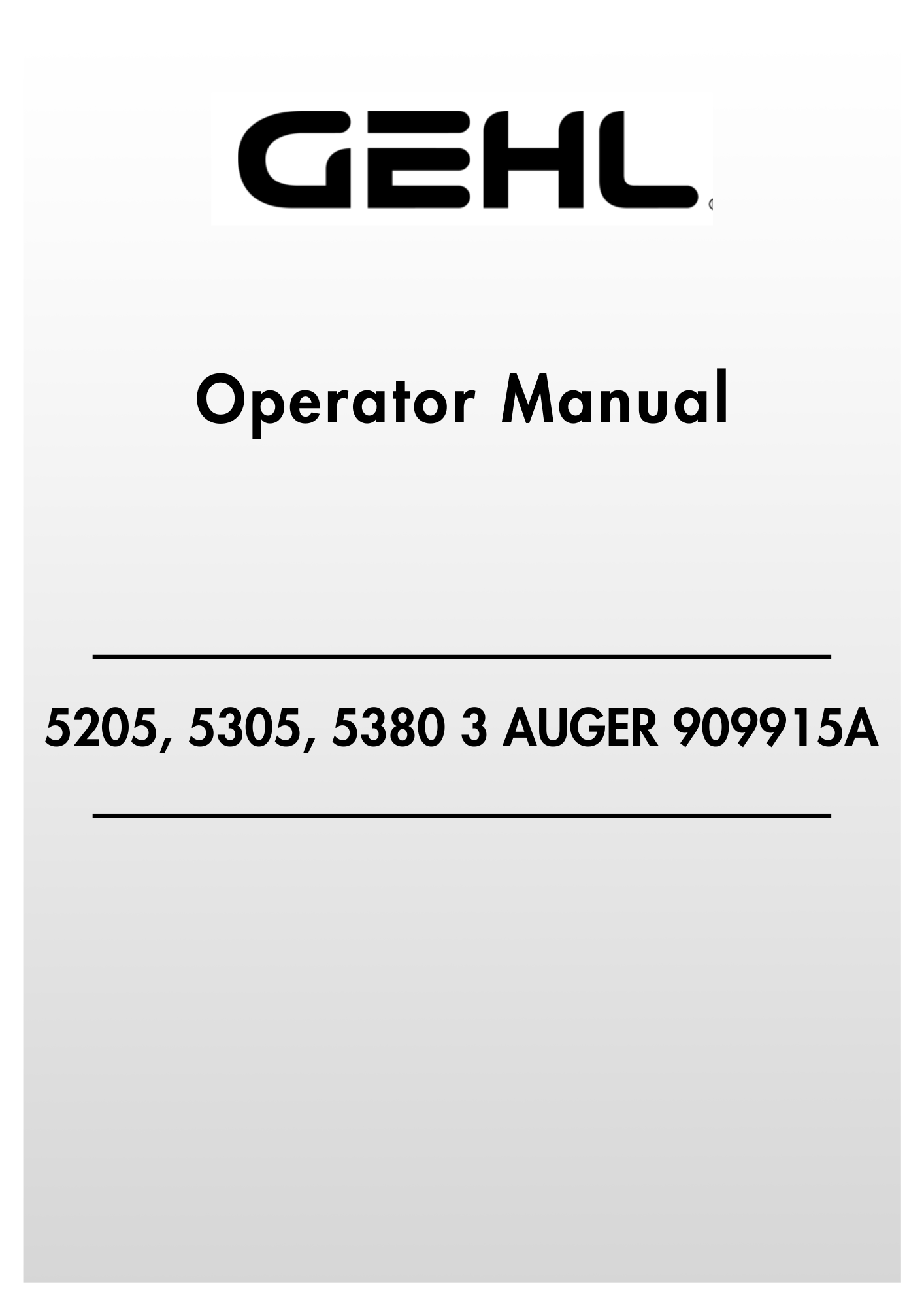 Enhance your operational efficiency with the GEHL 5205, 5305, and 5380 3 Auger Operator Manual (Part No. 909915A). This comprehensive guide is designed to provide you with essential information on the safe and effective use of your auger equipment. With clear instructions, detailed diagrams, and troubleshooting tips, this manual ensures you maximize performance and minimize downtime. Invest in your productivity and keep your machinery running smoothly with this indispensable resource.